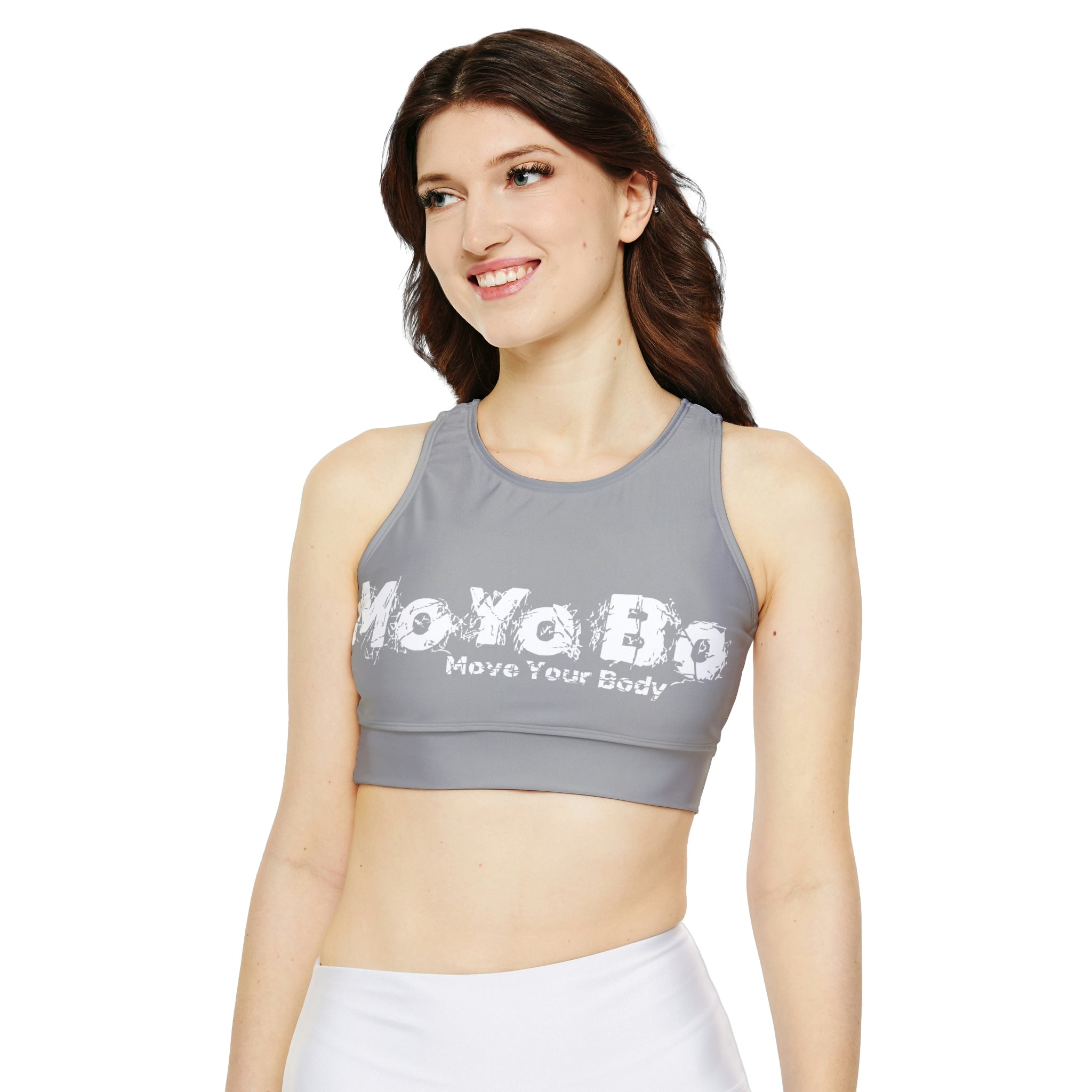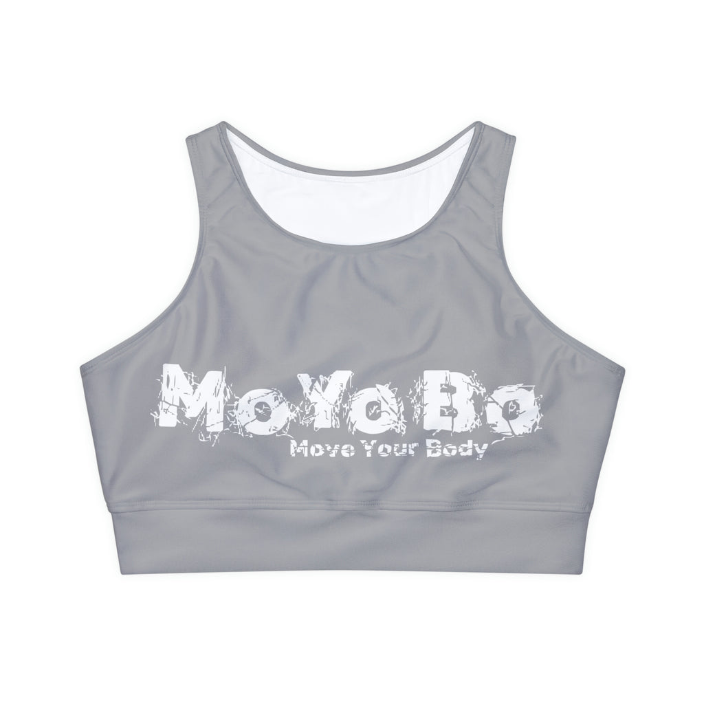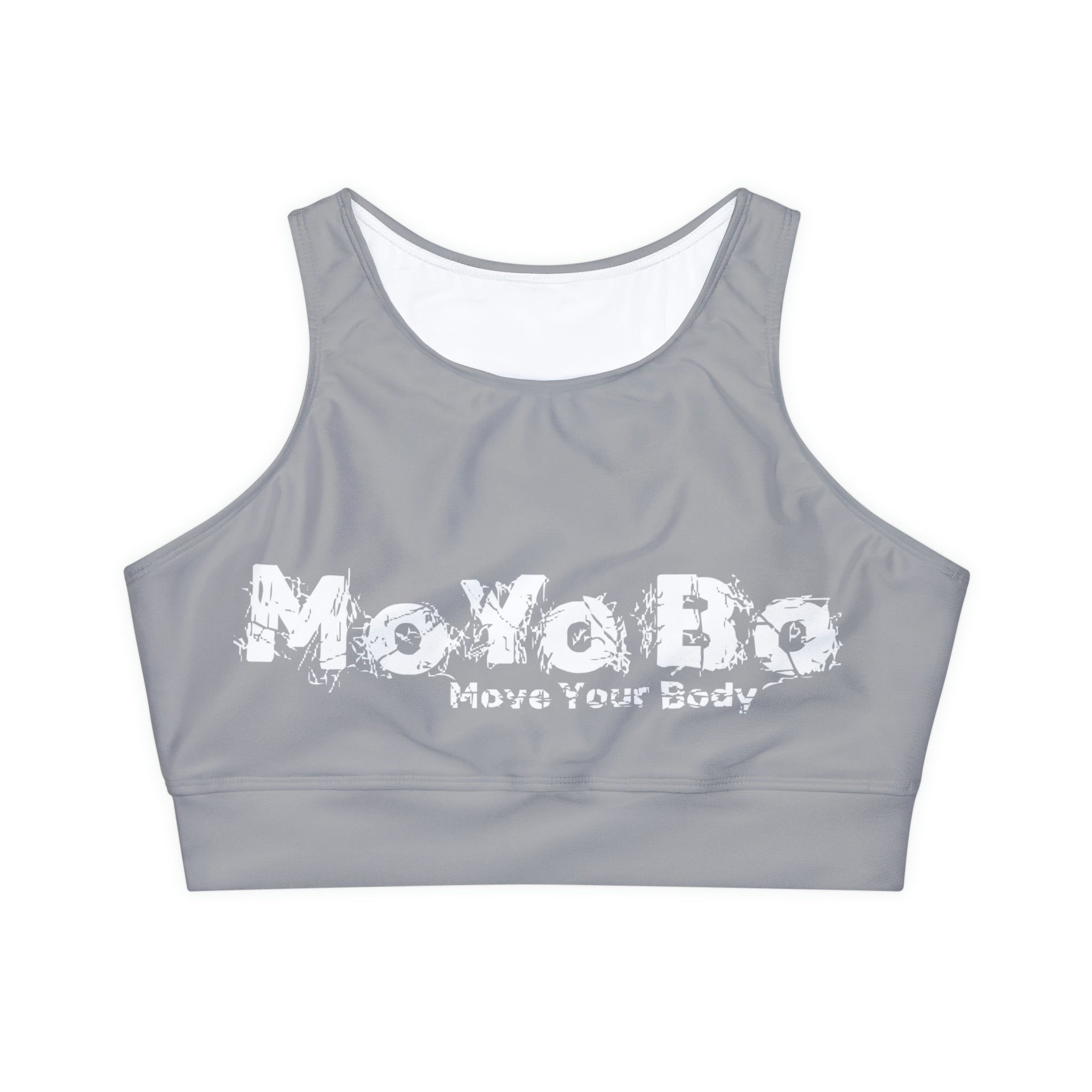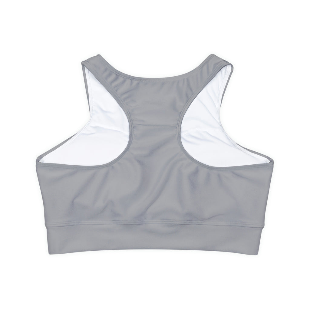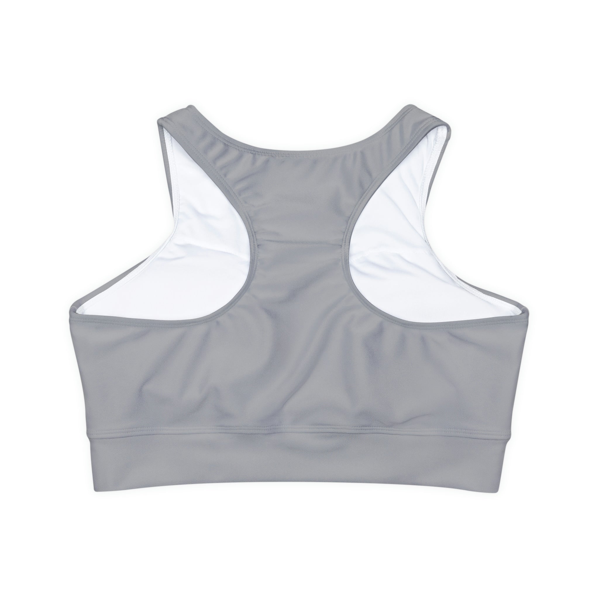 Fully Lined, Padded Sports Bra, Light Grey, White Logo