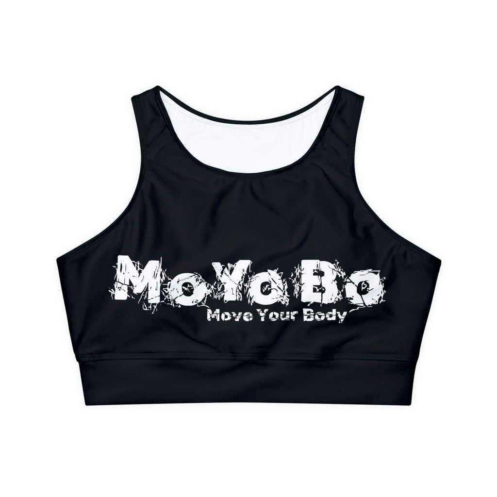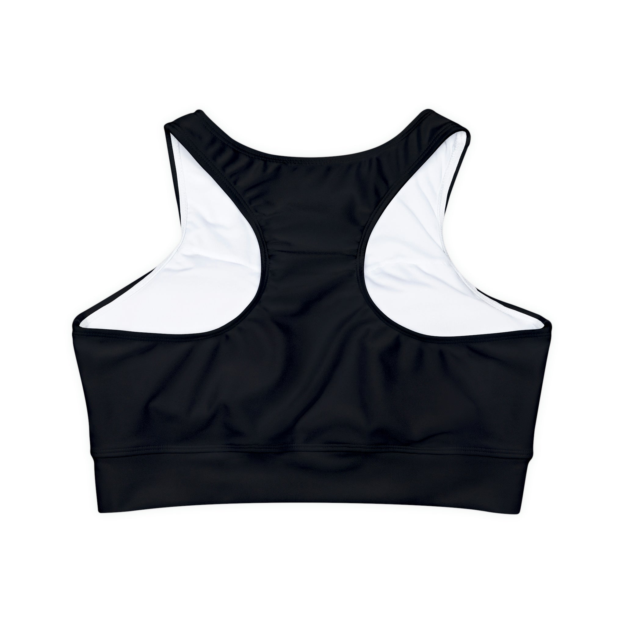 Fully Lined, Padded Sports Bra, Black, White Logo