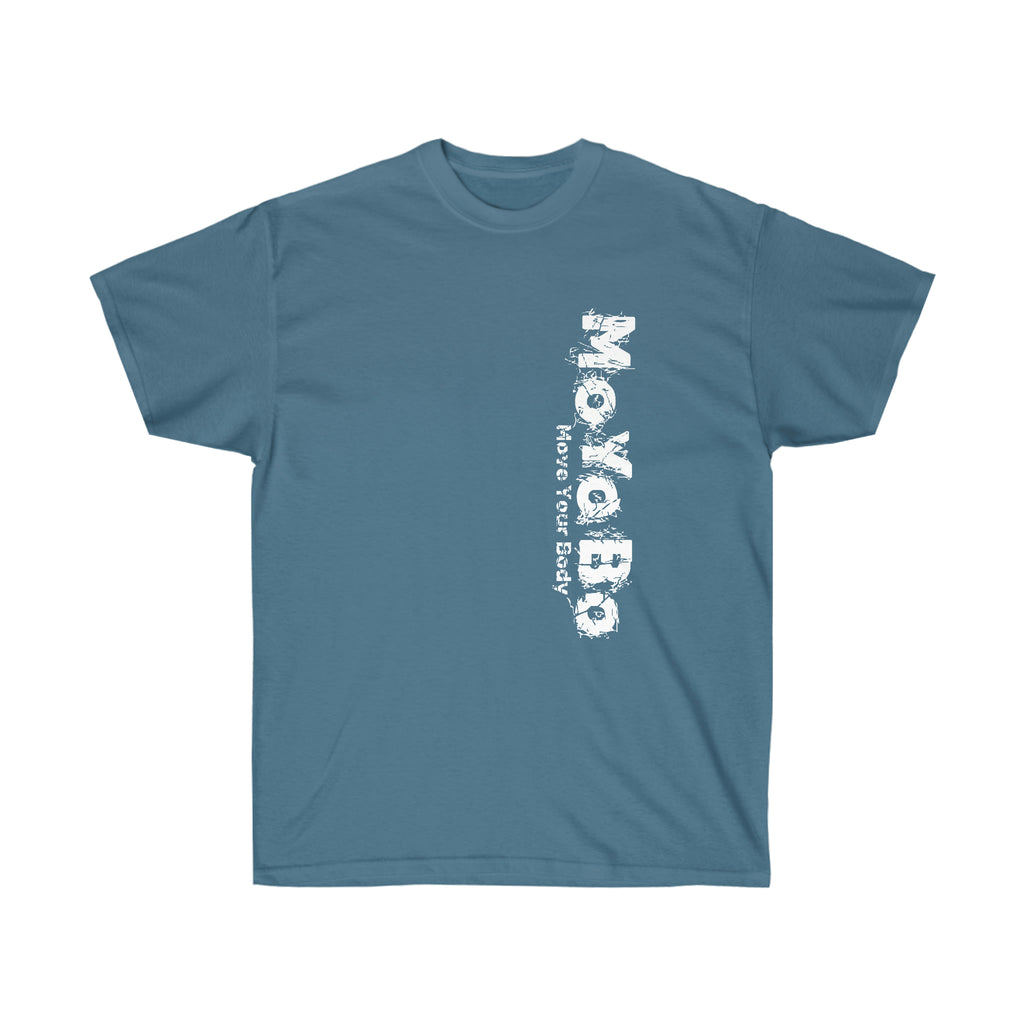 MoYoBo - Move Your Body is as much about living your life and developing your unique personality as it is about changing your body and strengthening your individual fitness attitude. It's a statement... about the commitment to change. So whether you see an athlete pushing it while sporting a MoYoBo muscle shirt, or, a beginner working out with MoYoBo on an oversized T-shirt, it's the commitment to "getting there" that's important here.