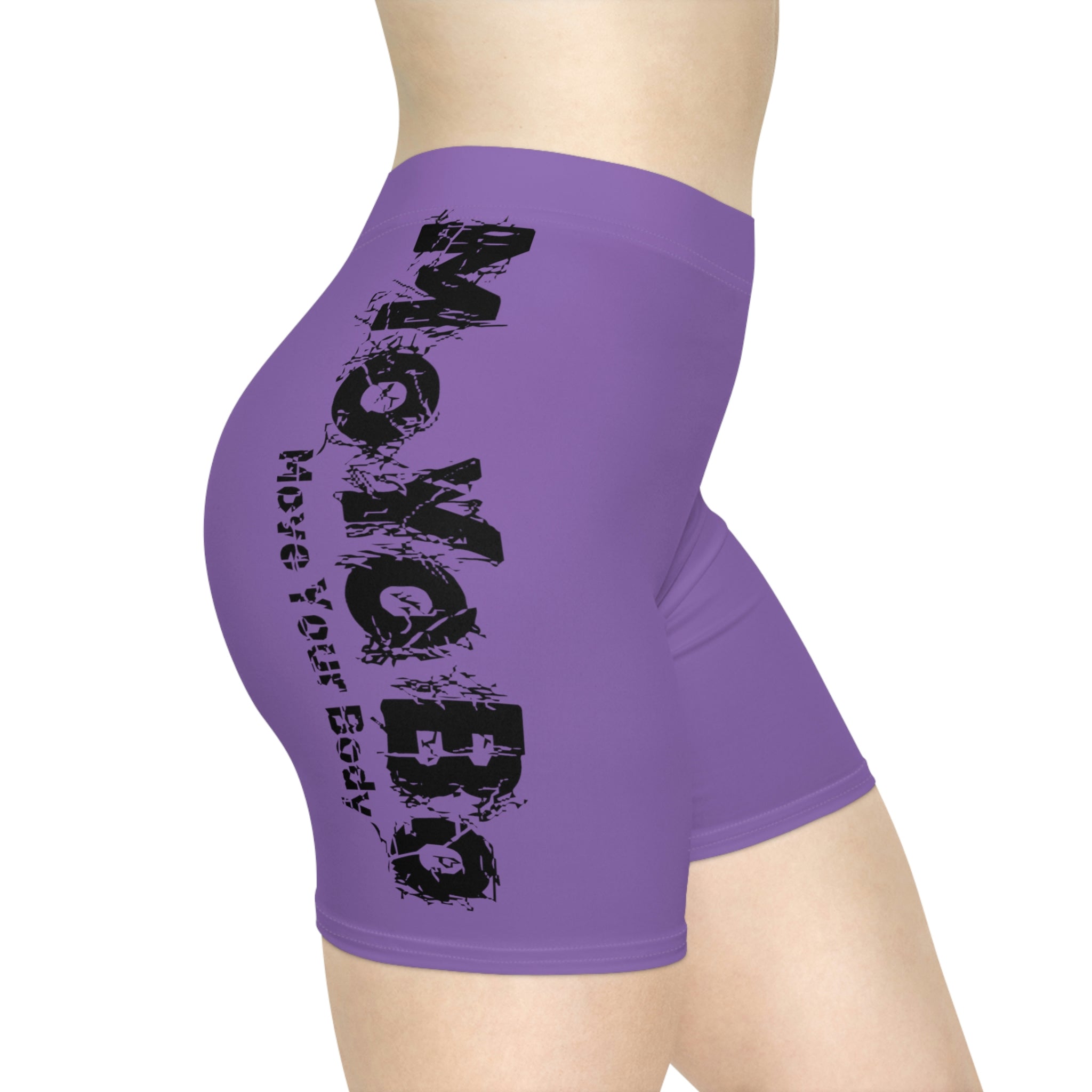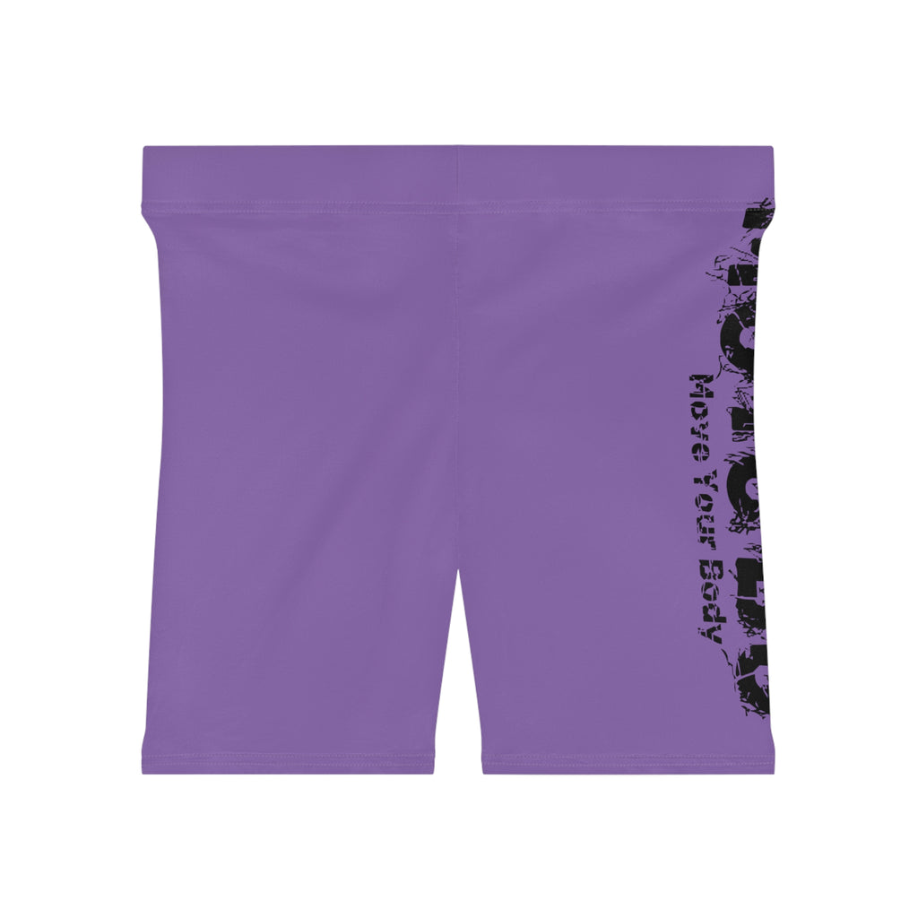 Biker shorts made their way back into fashion with a bang. They're super easy to style for daytime and casual nights out. TheseLight Purple MoYoBo Biker Shorts are comfy, soft, and mold to the shape of your body. They'll also hold up great when doing exercises – the polyester has moisture-wicking properties. The waistband is 1.5” wide to create a sleek look.
