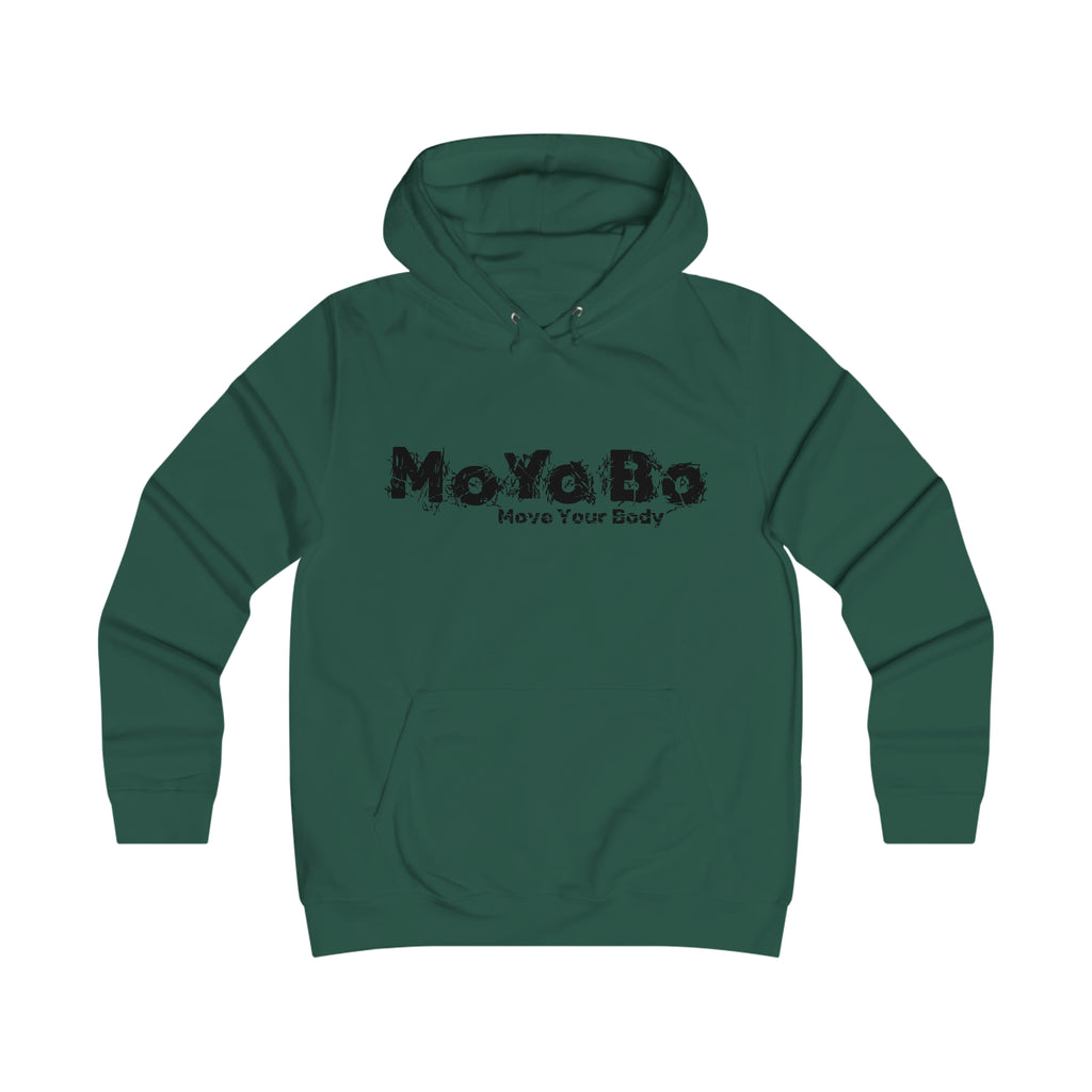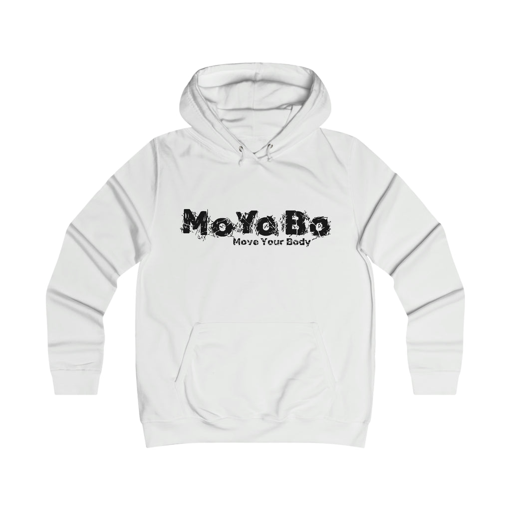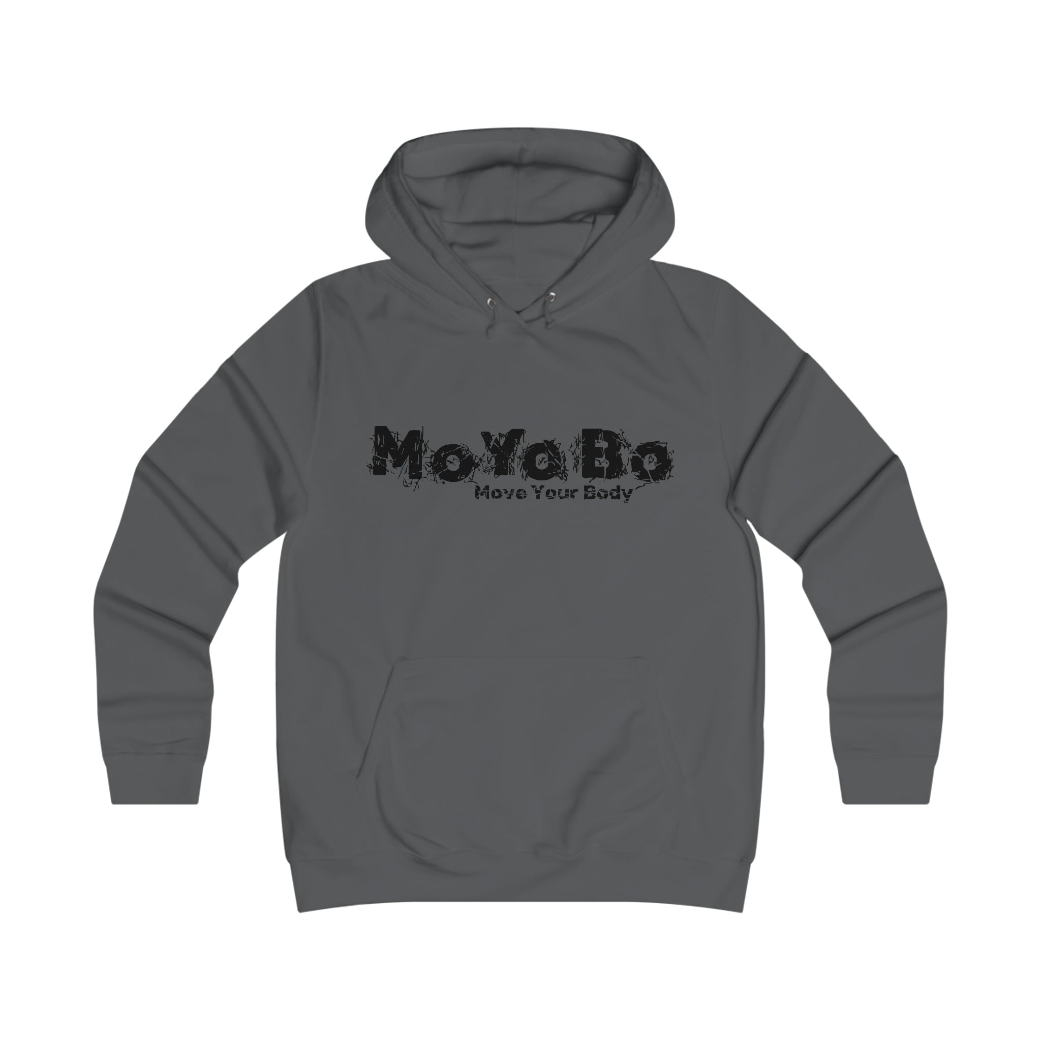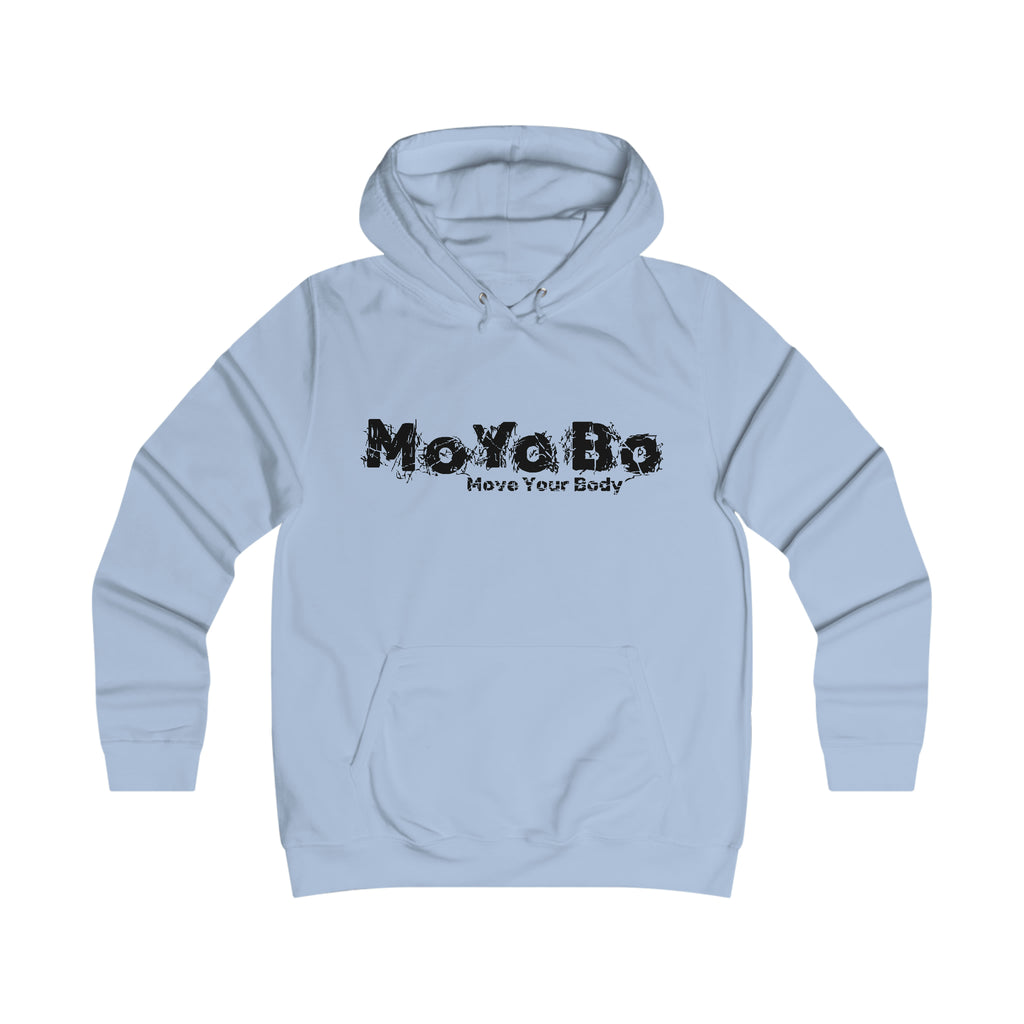 This MoYoBo College Hoodie has a feminine fit and features a double fabric hood, Kangaroo pouch pocket with a small hidden opening for headphone cord feed, ribbed cuffs and hem, self-colored drawstring cords and twin needle stitch detailing.