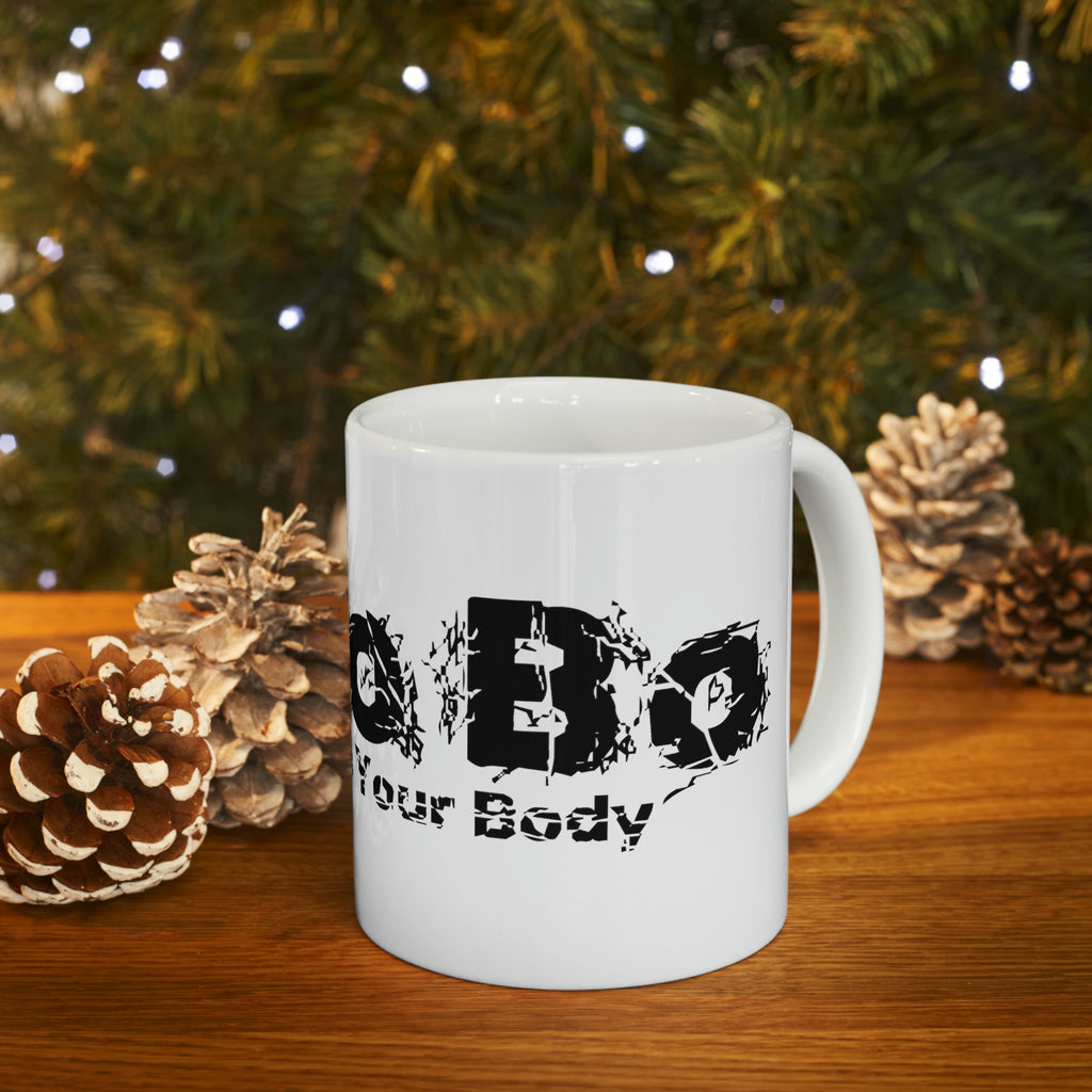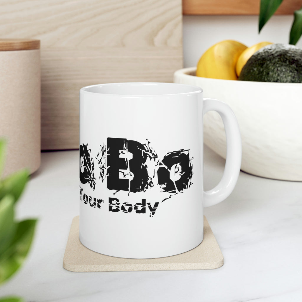 Enjoy a nice cuppa whatever you drink out of this MoYoBo ceramic mug to make that "aaahhh!, Move Your Body" moment even better.