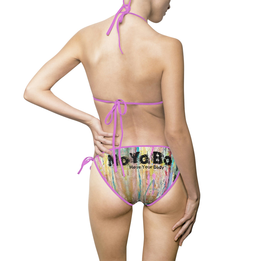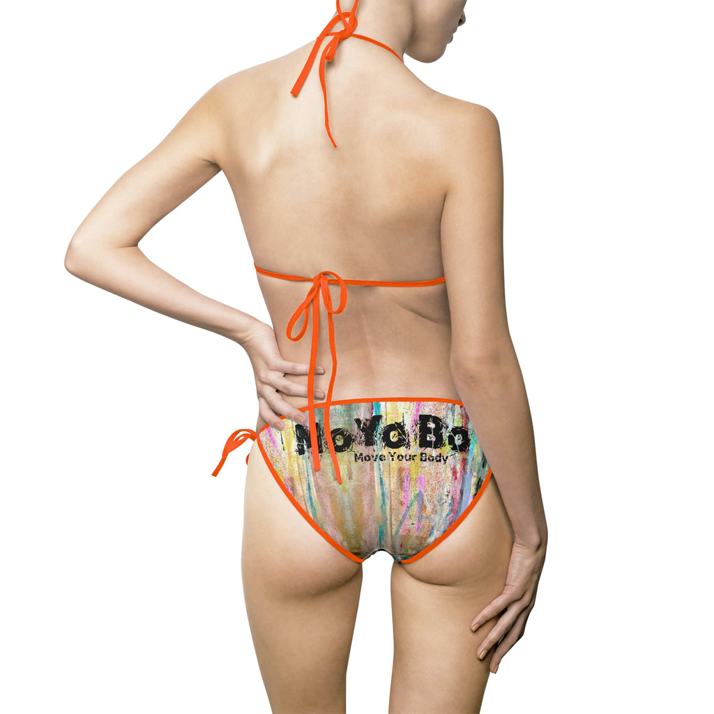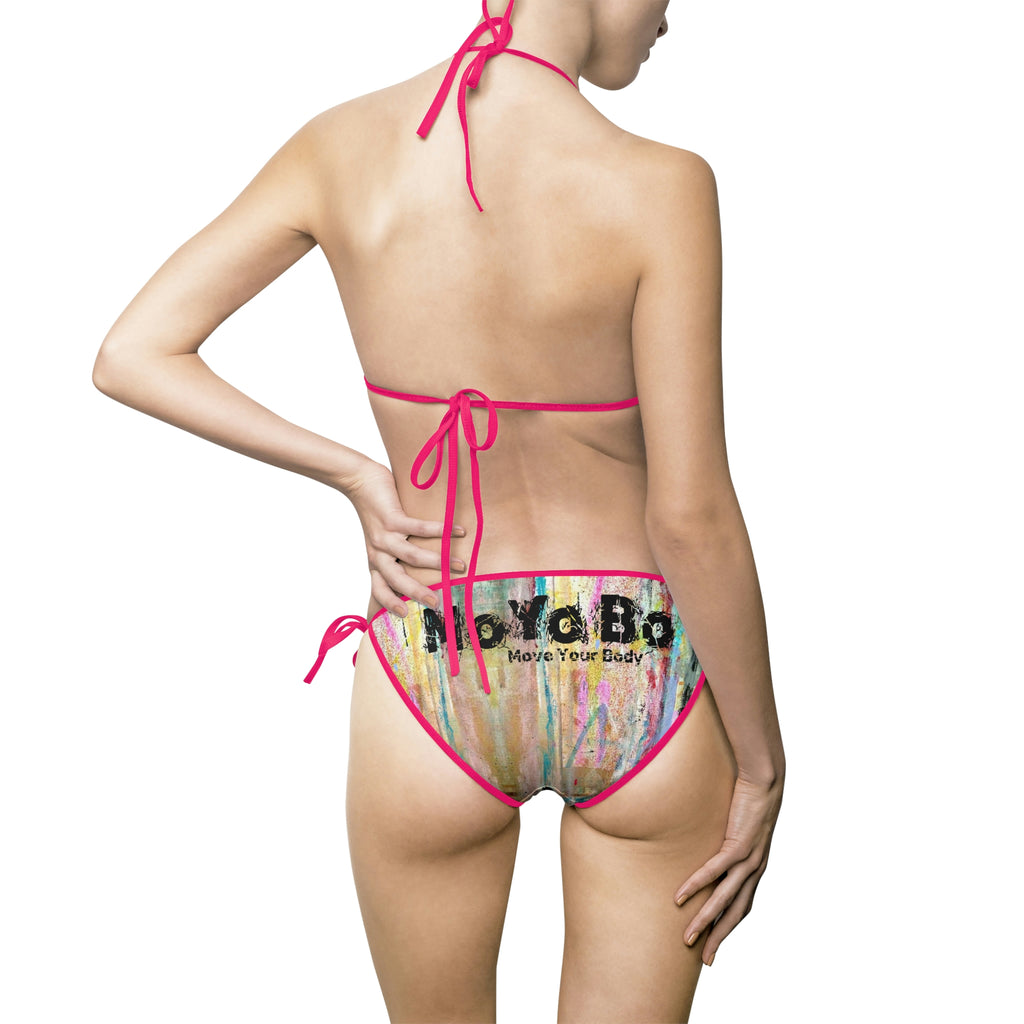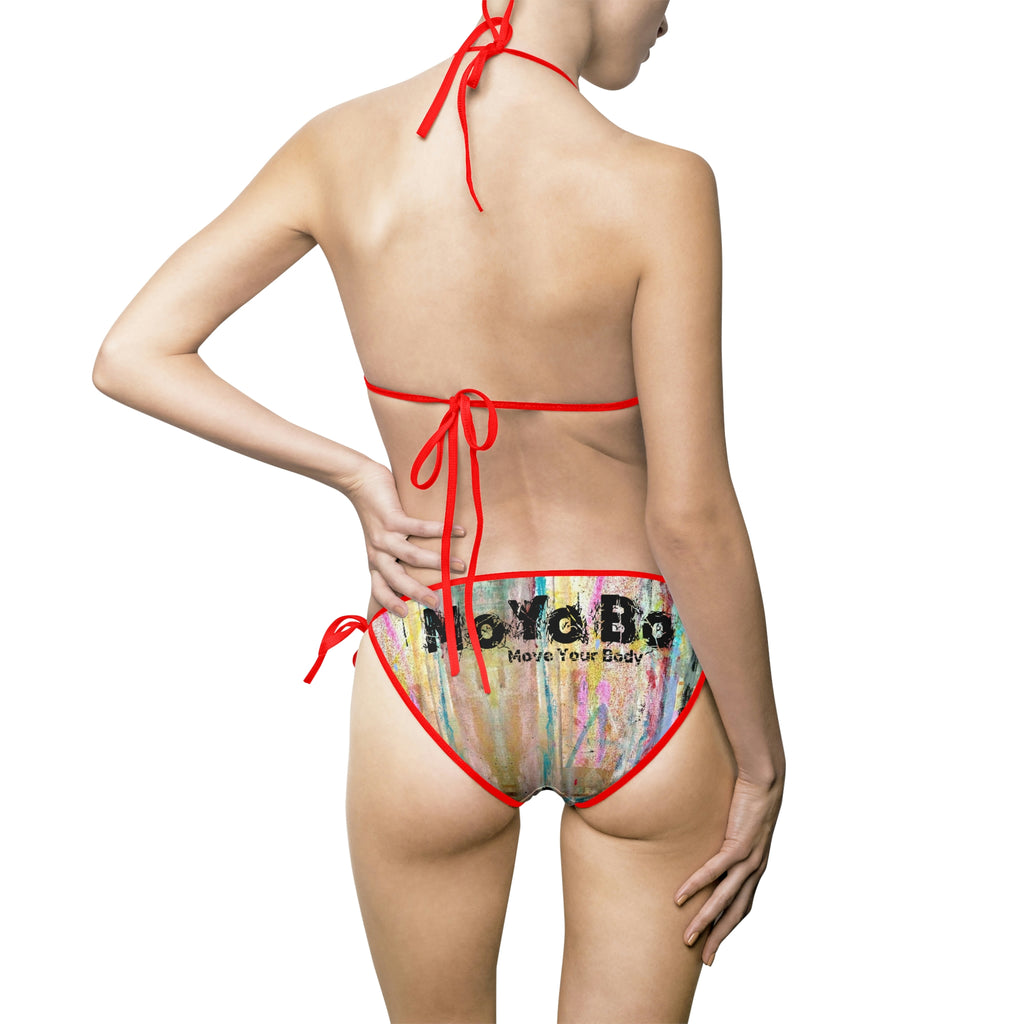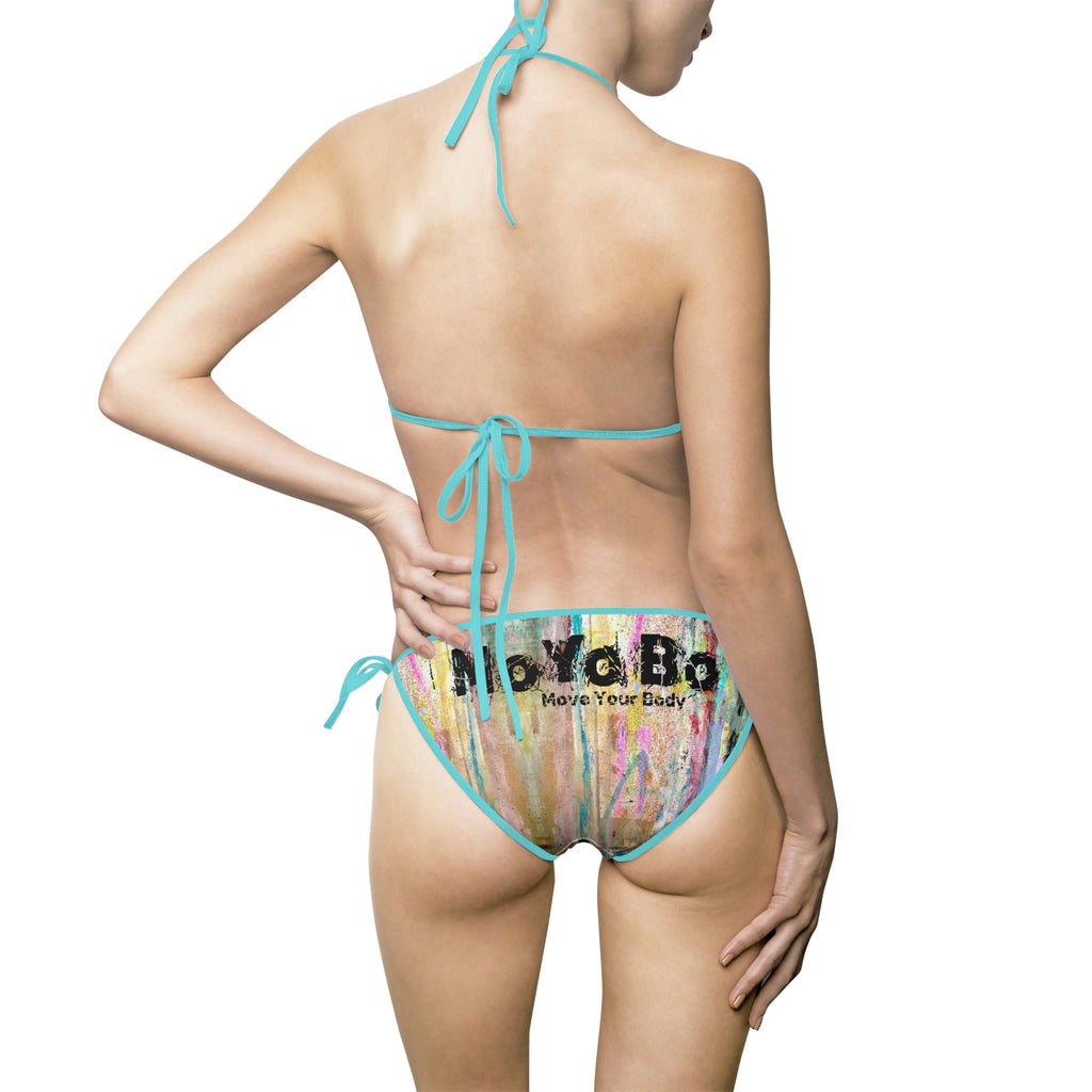 This Art bikini swimsuit is designed for women who prefer this cut with the MoYoBo logo on the Top, and on the Bottom. It has the classic white look with a black logo which will not fade in water.