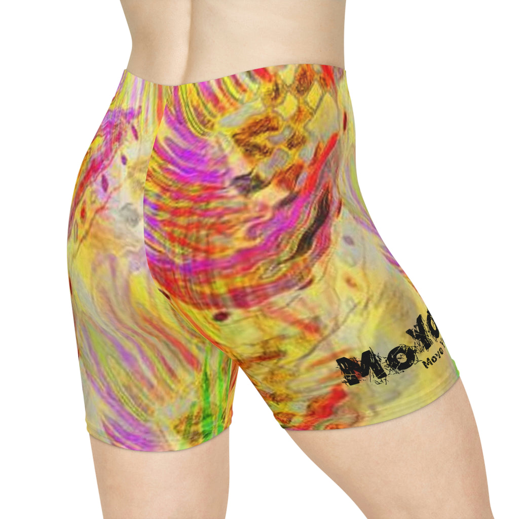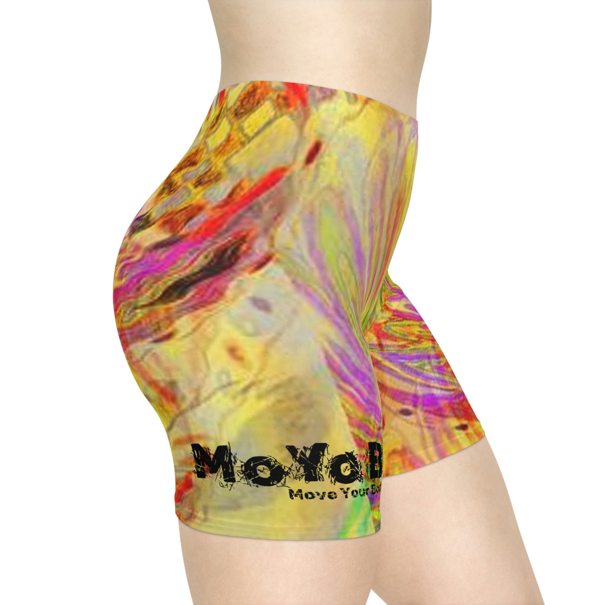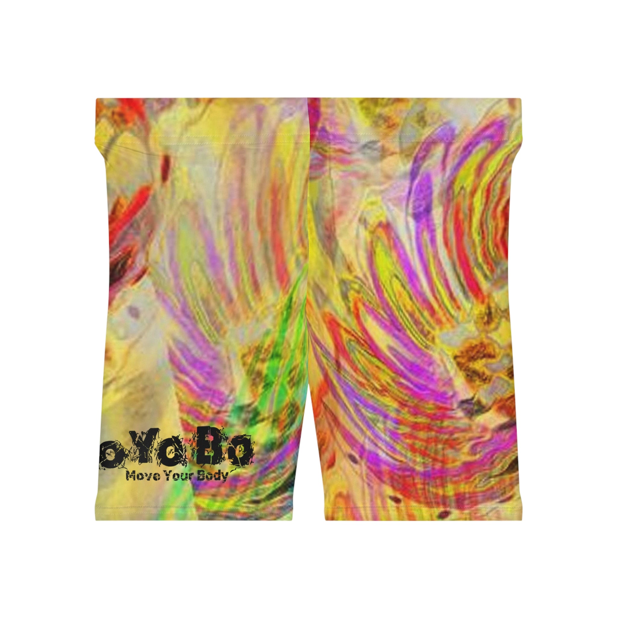 Biker shorts made their way back into fashion with a bang. They're super easy to style for daytime and casual nights out. These amazing Yellow Swirl MoYoBo Shorts have a small logo on the front right leg hemline. These are comfy, soft, and mold to the shape of your body, thanks to the blend of 95% polyester and 5% spandex. They'll also hold up great when doing exercises – the polyester has moisture-wicking properties. The waistband is 1.5” wide to create a sleek look.