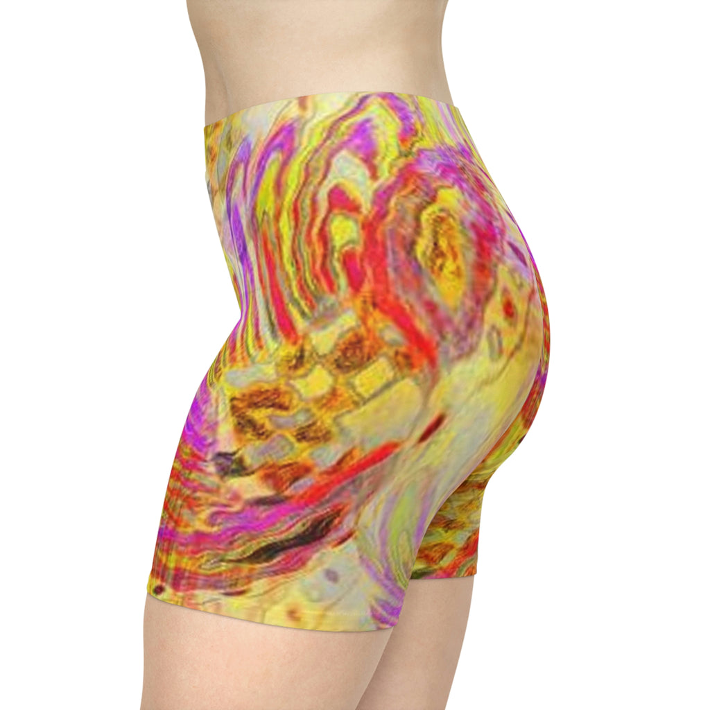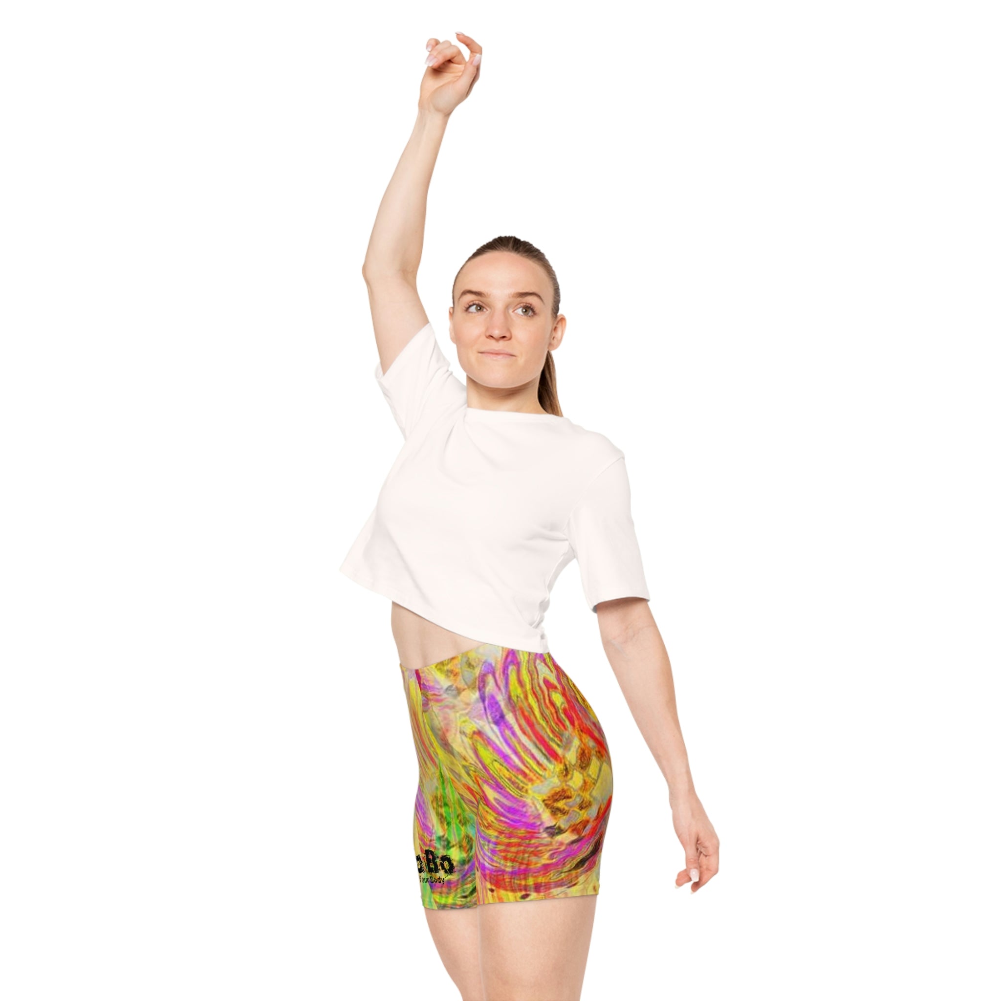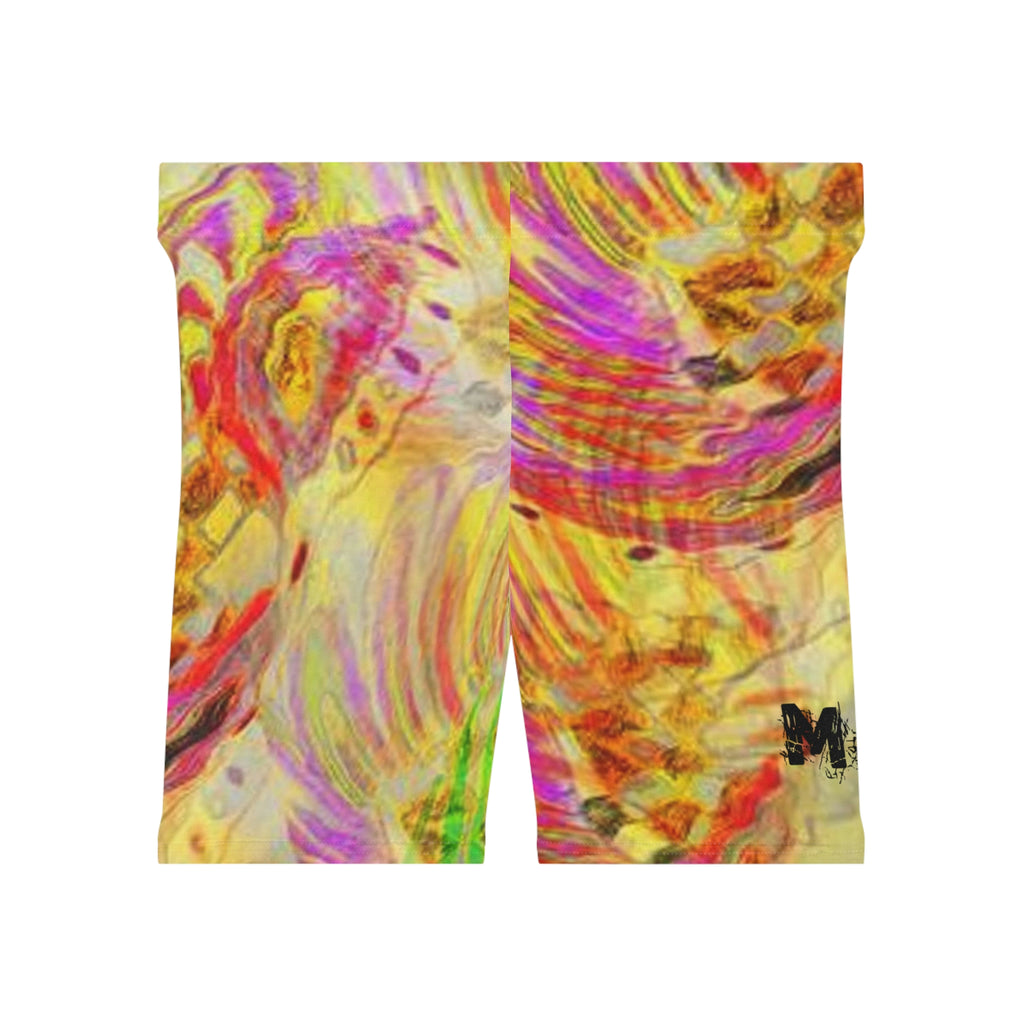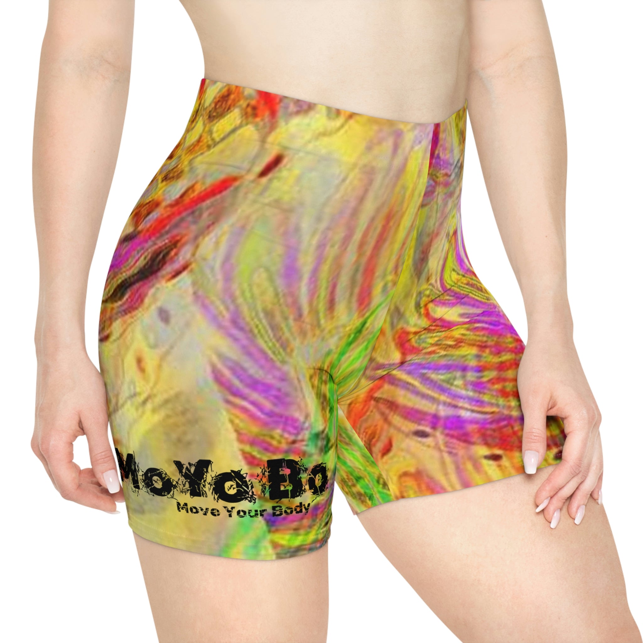 Biker shorts made their way back into fashion with a bang. They're super easy to style for daytime and casual nights out. These amazing Yellow Swirl MoYoBo Shorts have a small logo on the front right leg hemline. These are comfy, soft, and mold to the shape of your body, thanks to the blend of 95% polyester and 5% spandex. They'll also hold up great when doing exercises – the polyester has moisture-wicking properties. The waistband is 1.5” wide to create a sleek look.